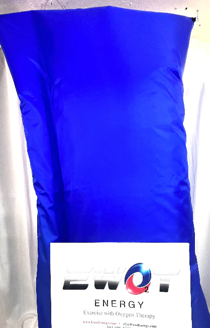 - One of the largest reservoir bags available in the USA. High volume capacity of approximately 1700 total liters. EWOT Energy’s proprietary training bags are custom and individually handmade and sewn. Each bag has a dual chamber reservoir system, which is set up internally for use in EWOT and Altitude contrast training. This enables the user to train in altitude – low oxygen – (hypoxic) to high oxygen (hyperoxic) training.